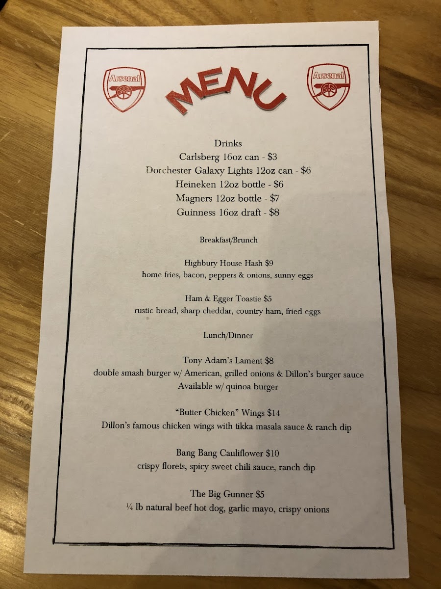 Introducing the Menu at Dillon's