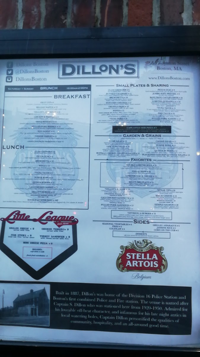 For a casual yet flavorful outing in Boston, Dillon's menu promises satisfaction for every palate.